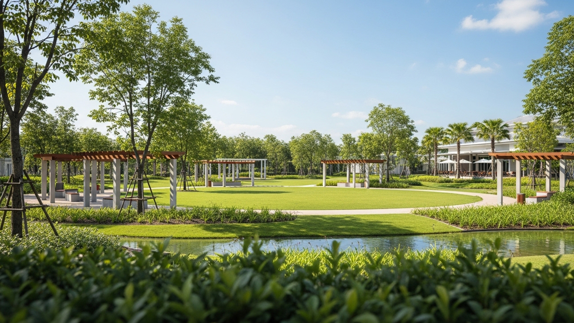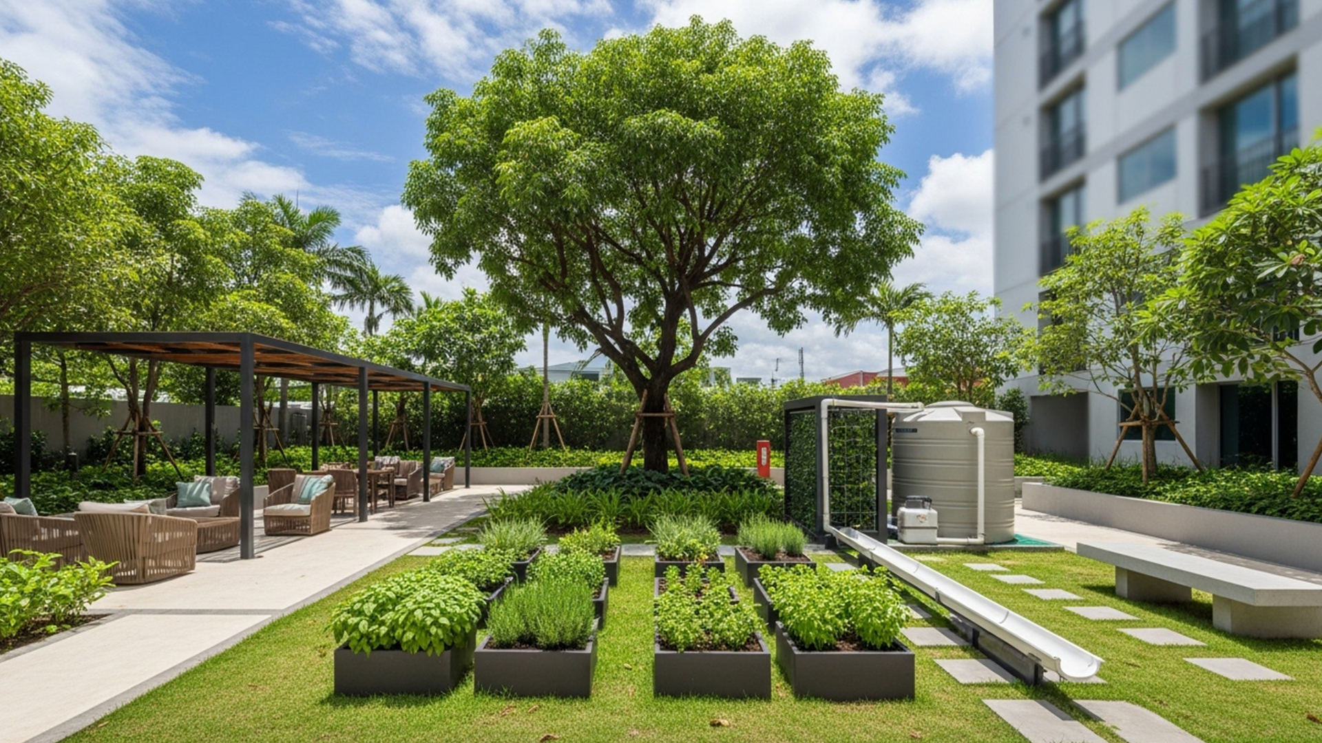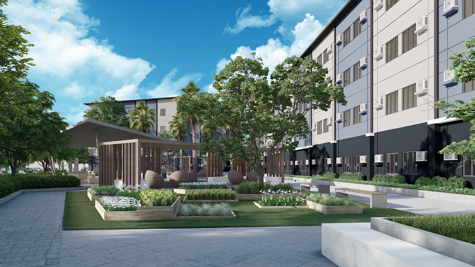 Across these communities, air quality is prioritized through the integration of thoughtfully planted open spaces and a majority-native plant palette, selected not just for aesthetics but for their role in cooling the surroundings, filtering air, and supporting biodiversity. In some communities, even nurseries and edible gardens are being implemented to promote greener, self-sustaining living.